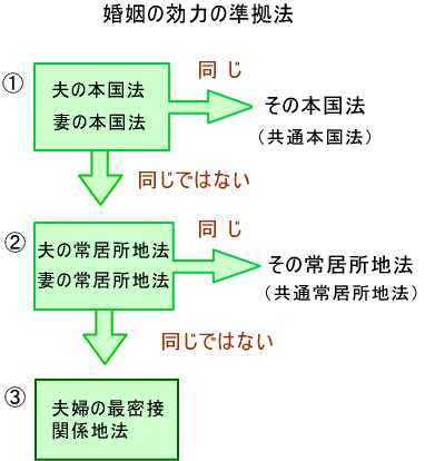 @ 前述した離婚の際の親権者または看護者の決定に関し、東京地裁[4]は、「離婚の際の親権の帰属問題は、子の福祉を基準にして判断すべき問題であるから、法例第21条の対象とされている親権の帰属・行使、親権の内容等とその判断基準を同じくすべきである」として、法例第21条(現在の適用通則法第32条)を適用し、準拠法を決定した。