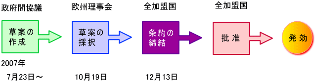 リスボン条約は、全加盟国が国内憲法の規定に従い批准した後に発効する(リスボン条約第6条第1項、EU条約旧第48条第3項参照)。国民投票を実施するか否かは、国内法上の問題であり、リスボン条約や現行EU法上、その実施が義務付けられているわけではない。なお、欧州憲法条約の批准に際しては、幾つかの加盟国で国民投票が実施されたが(詳しくは